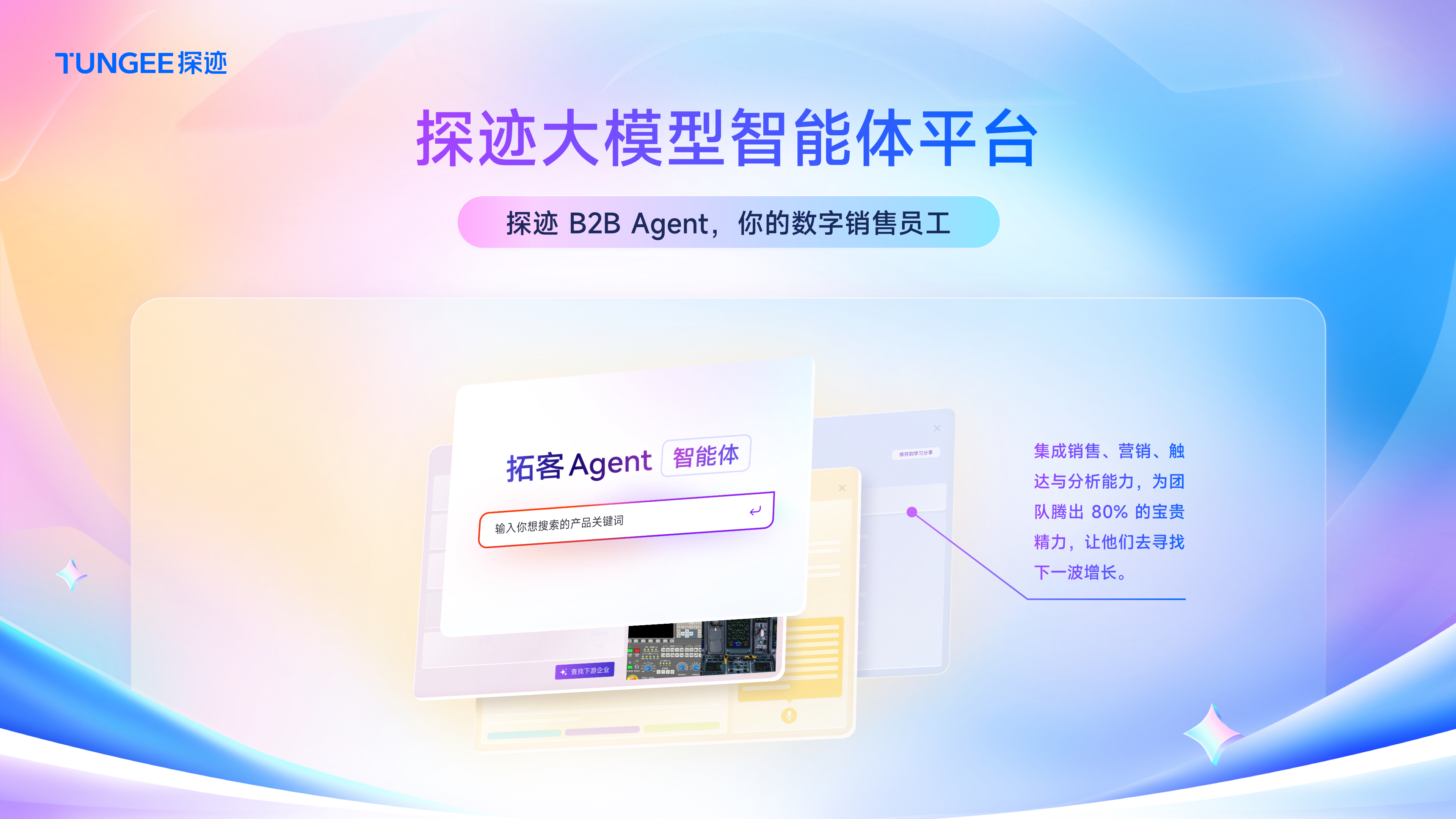 在B2B场景,探迹科技提供集成销售、营销、触达与分析能力的Agent组合,通过自动化客户开发、互动沟通与数据决策全流程,全面提升B2B业务的获客效率与转化效果。