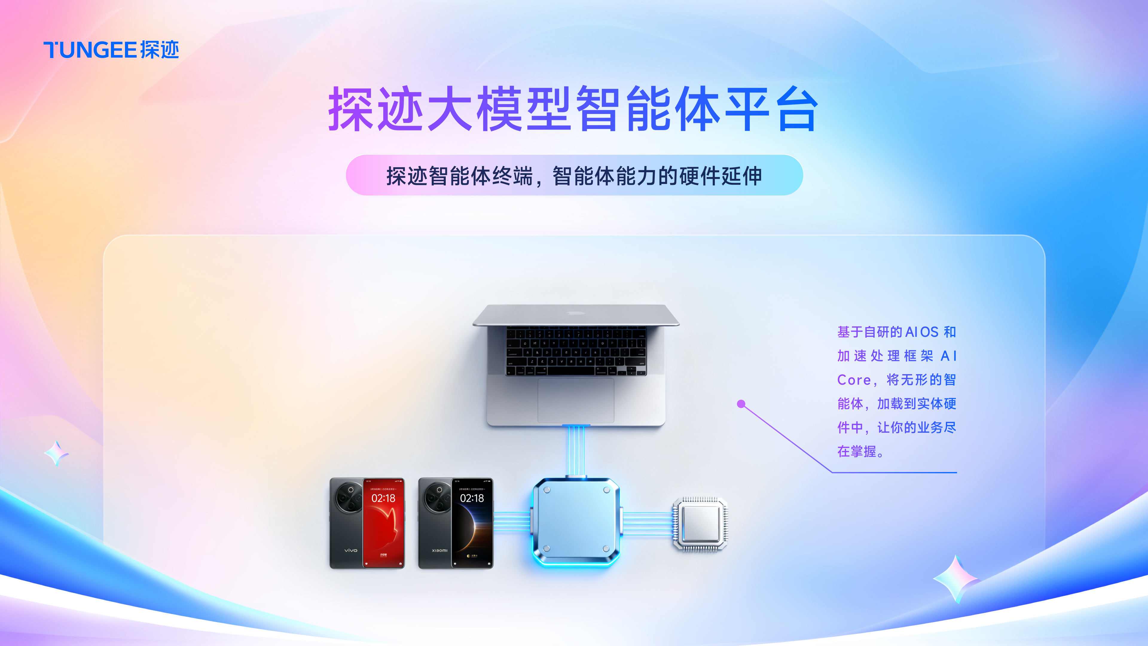 基于自研的AI OS 和加速处理框架AI Core,探迹将智能体能力延伸至智能体终端生态。这不仅带来了更自然的交互体验和底层算力支撑,更实现了服务场景的灵活扩展。