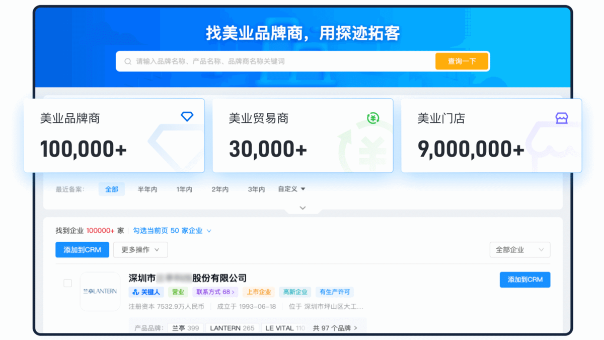 探迹拓客美业版专为美业企业设计,深度解决“找客户-挖需求-建合作”全链路痛点。以连锁客户开发为例,核心功能与落地价值。