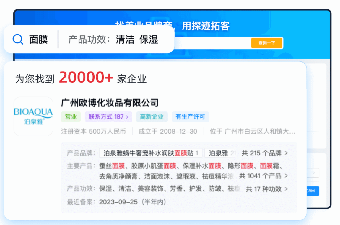 根据产品及功效(如清洁、保湿)批量筛选匹配客户。